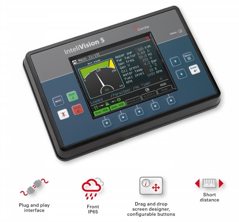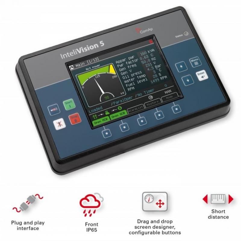 InteliVision 5 ist ein 5,7 Zoll-Farbdisplay für ComAp InteliGen-NT, InteliSys-NT und InteliMains-NTSteuergeräte.